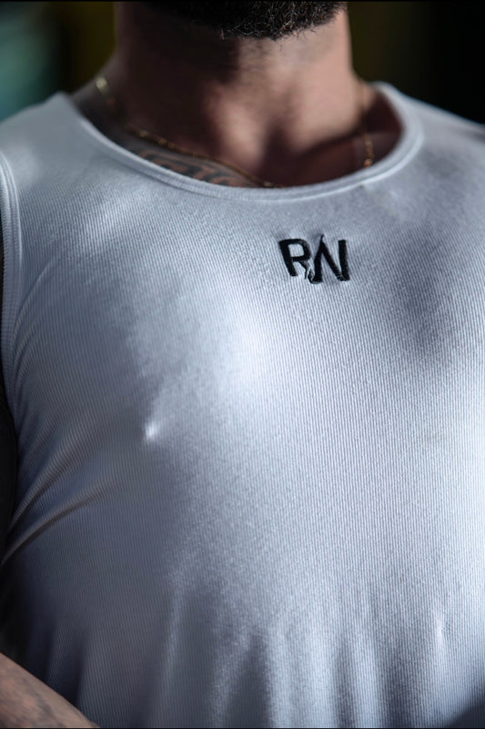 White Ribbed Muscle Fit Vest